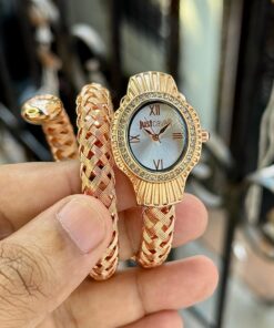 - Elegant Dual-Tone Coil Strap with Stunning Blue Dial – Designed to Stand Out