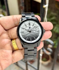 ➡️ Elegant Black Textured Dial with Day & Date Display – Classic Rolex Identity