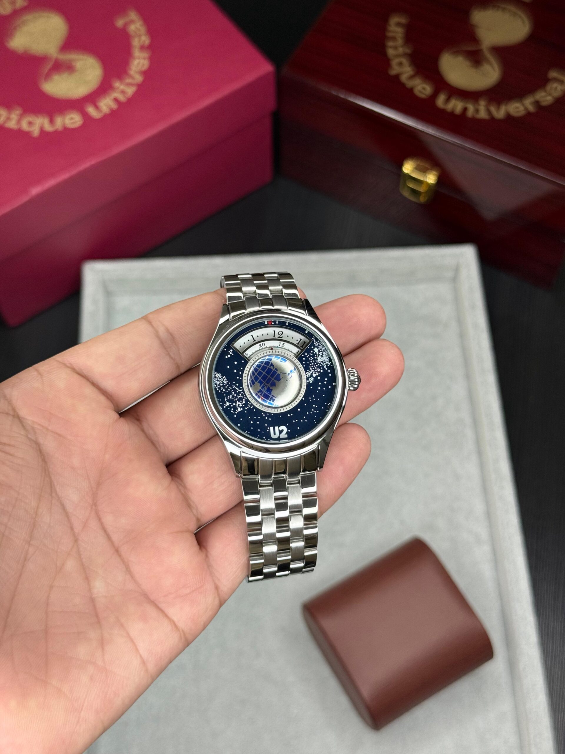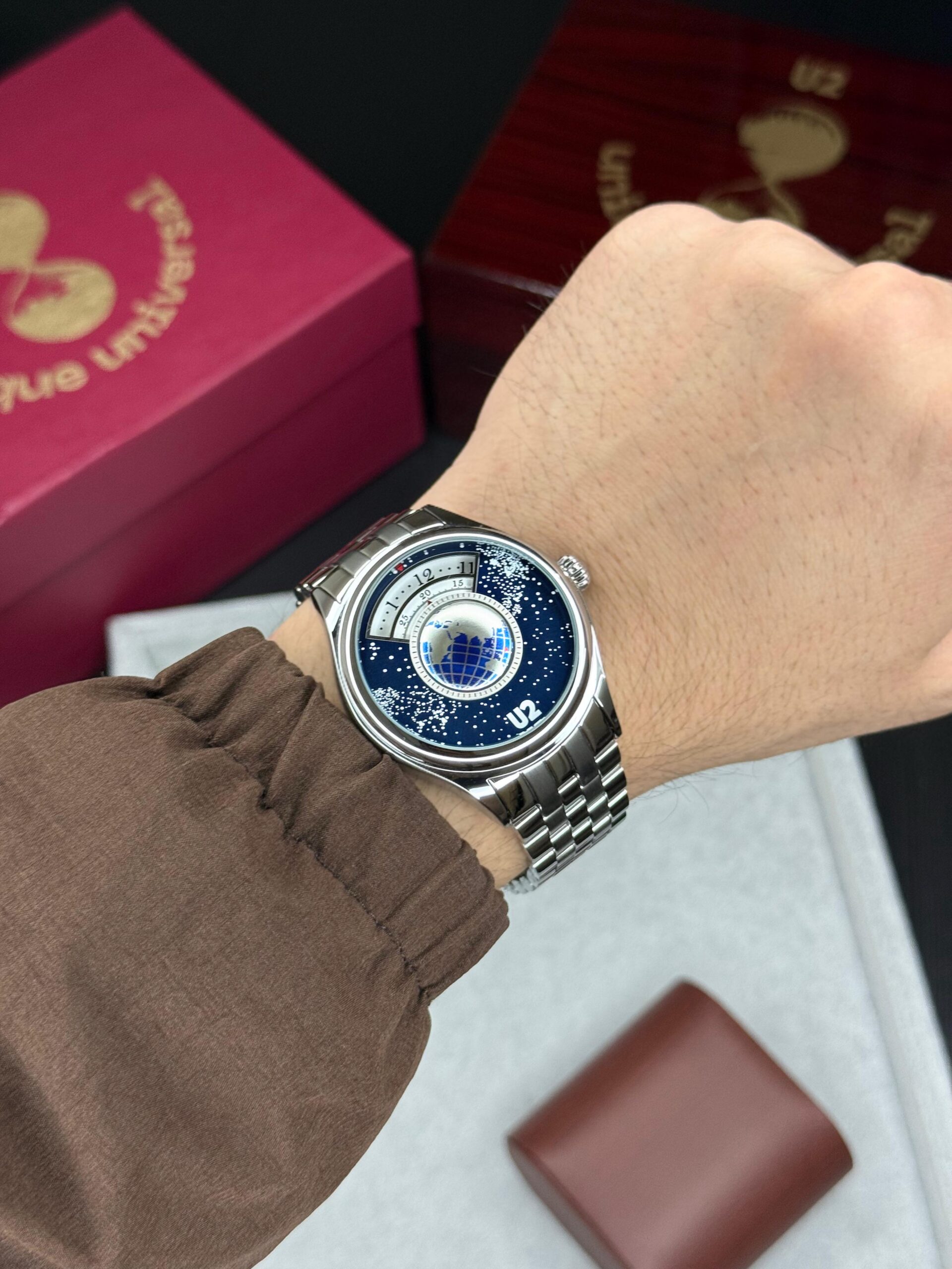 Elevate your style with the stunning U2 Universe watch, a perfect blend of elegance and modern design. Featuring a deep blue dial inspired by a starry night sky